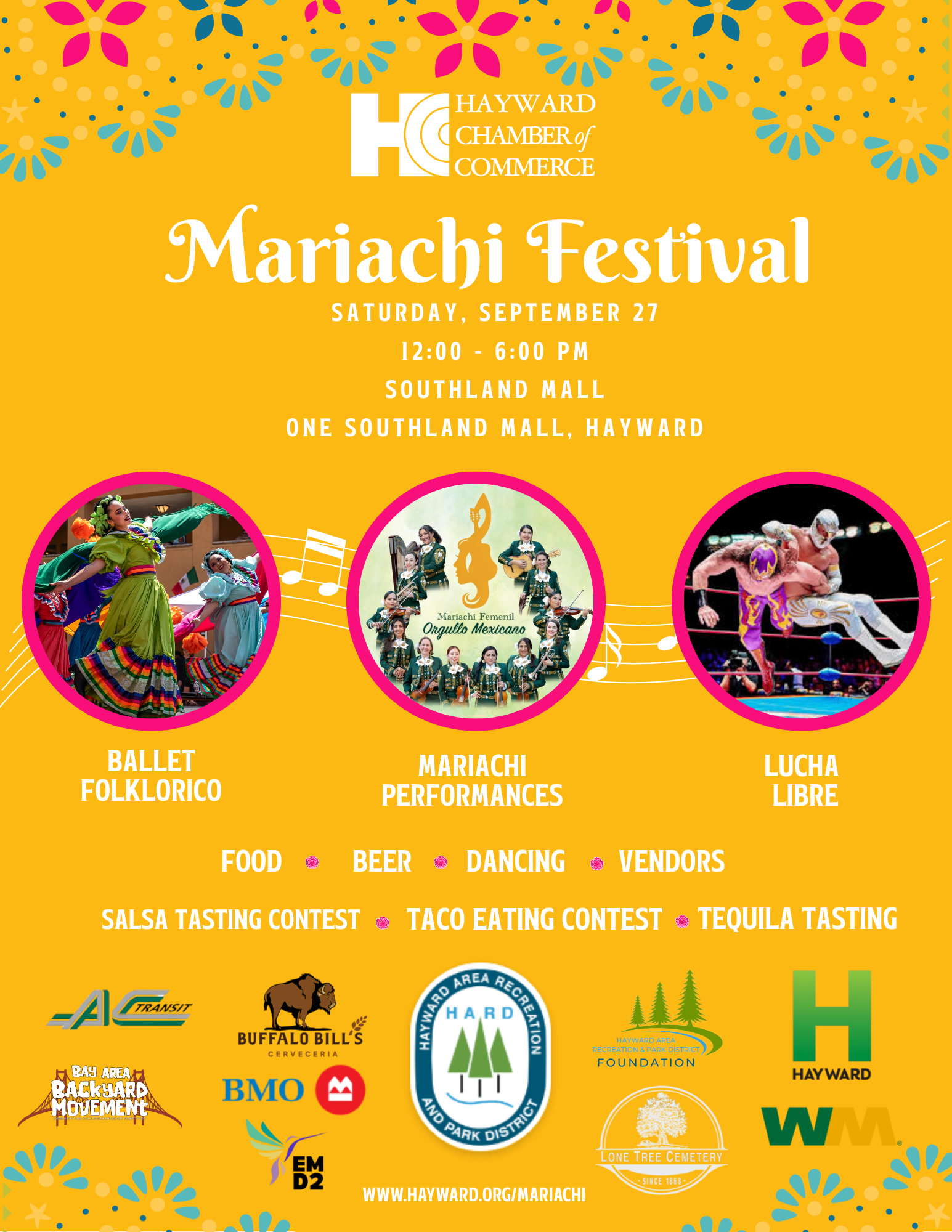 A vibrant celebration of Mexican culture, our mariachi festival draws over 6,000 attendees from across the San Francisco Bay Area, offering businesses and partners a unique opportunity to engage with a diverse audience. Renowned mariachi bands showcase the genre's rich heritage through stunning regalia, intricate instrumentation, and soulful vocals.