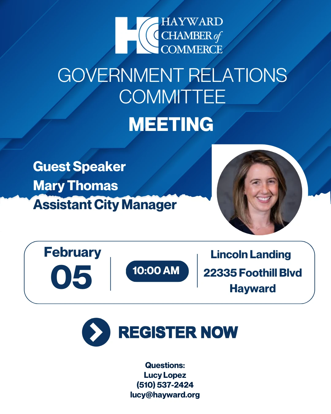 This meeting is open to Hayward Chamber members. Members are invited to attend in person or via Zoom.  Please register and a Zoom link will be sent once your registration is approved.