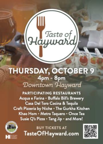 X-ALT-DESC;FMTTYPE=text/html:<!DOCTYPE html><html><head><title></title></head><body aria-disabled="false"><p style="text-align: center\;"><img src="https://res.cloudinary.com/micronetonline/image/upload/c_limit\,w_358\,h_503/v1757722603/tenants/c31b2dc0-ef16-4d12-bd0a-85ce381129f9/a176023e4e3b482583fa06a0b4318138/Taste-of-Hayward-2025-Postcard-5x7-rev-Digital.jpg" width="358" height="502" fr-original-style="" fr-original-class="fr-draggable" style="position: relative\; max-width: 100%\; cursor: pointer\; padding: 0px 1px\;"><br></p><p>Get ready to eat your way through Downtown Hayward at the first-ever Taste of Hayward!&nbsp\;</p><p>Happening Thursday\, October 9 from 4:00 to 8:00 PM\, this one-night-only foodie adventure features over 20 local Hayward dining destinations serving up bites\, sips\, and sweet treats.&nbsp\;</p><p>Grab your Taste Passport at check-in (Hayward City Hall) and stroll through the streets of Hayward while enjoying appetizers\, entr&eacute\;es\, desserts\, and drinks at your own pace. Whether you are a longtime local or just discovering Hayward\, this is your chance to find new favorites and support the diverse neighborhood restaurants that call Hayward home.&nbsp\;</p><p>Tickets are $35 per person (plus a service fee) and include access to all tasting locations.&nbsp\;</p><p>Don&rsquo\;t miss this delicious Downtown Hayward experience!&nbsp\;</p><p style="text-align: center\;"><span style="color: rgb(41\, 105\, 176)\;"><a fr-original-class="fr-green" fr-original-style="" href="https://events.com/r/en_US/tickets/taste-of-hayward-hayward-october-992139?_gl=1*dqe4nb*_gcl_au*MTcxNzA2MDkxMy4xNzUzNzI1ODc0*_ga*MTc3MjE0MjYxNy4xNzUzNzI1ODcx*_ga_D339JNKPWE*czE3NTQ1MTQwNTYkbzIwJGcxJHQxNzU0NTE0MTM0JGo2MCRsMCRoMA..*_ga_G828JZ0G3G*czE3NTQ1MTQwNTYkbzIwJGcxJHQxNzU0NTE0MTM0JGo2MCRsMCRoMA.." style="user-select: auto\; color: inherit\;"><strong fr-original-style="" style="font-weight: 700\;">Purchase you tickets today!</strong></a></span></p><p style="text-align: left\;">If you are a Hayward business interested in participating in this fabulous event\, we invite you to complete and submit the <span style="color: rgb(41\, 105\, 176)\;"><a fr-original-style="" href="https://www.fuseevents.com/taste-of-hayward-app" style="user-select: auto\; color: inherit\;"><strong fr-original-style="" style="font-weight: 700\;">Taste of Hayward application</strong></a>.</span></p></body></html>